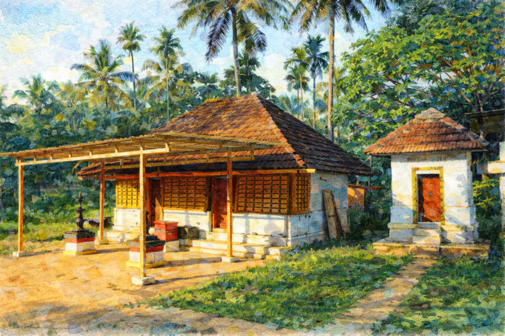 In the heart of Kadathanadu village, in northern Kerala lies a place where history and legend intertwine so seamlessly that every gust of wind seems to whisper a ballad of valor. This is Thacholi Manikoth, once the proud residence of Thacholi Othenan, the legendary warrior of the 16th century whose name still echoes in the folklore of Malabar. Today, the original house no longer stands. In its place is a modest temple, dedicated to Othenan, his elder brother Komapa Kurup, and his nephew Kelu Kurup. It is not just a temple; it is a living chronicle of Kerala’s martial traditions, heroic duels, and timeless devotion.