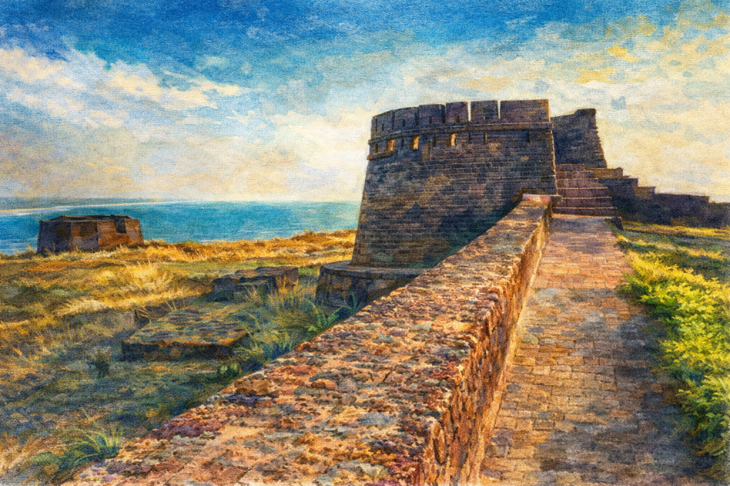 Nearly three-fourths of its structure extends into the sea, making it a rare example of military architecture that blends seamlessly with nature’s might. But like every great monument, Bekal’s origins are layered with legends. Some believe it was first built by the Kolathiri Rajas, later conquered and reconstructed by Shivappa Nayak while others suggest the fort rose from the ruins of an older structure, once held by local rulers under the Vijayanagara Empire.
