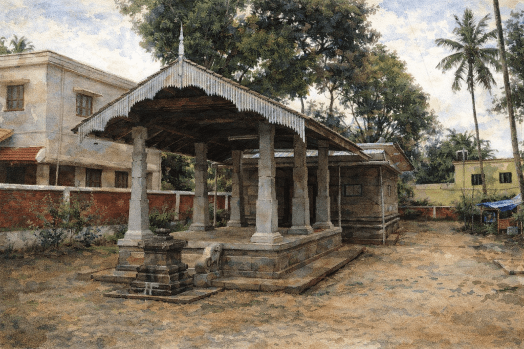 Unlike many Kerala temples rich in woodwork and carvings, this shrine stands unadorned, echoing the calm and contemplative spirit of Jain worship with photos of the Thirthankars. The raised stone mukhamandapam at the front now roofed and supported by sturdy stone pillars adds a serene charm to the space.