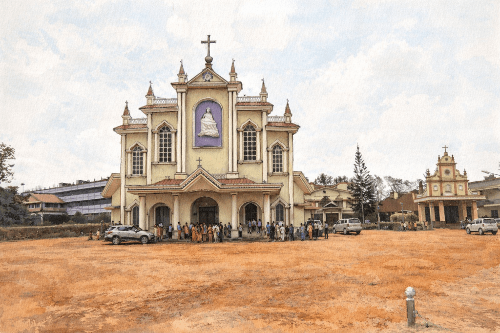 The region’s cultural flavour comes alive here Konkani, the local language of the people, is widely spoken, and church services are conducted in both Konkani and Malayalam, reflecting the blended heritage of Tulunad.