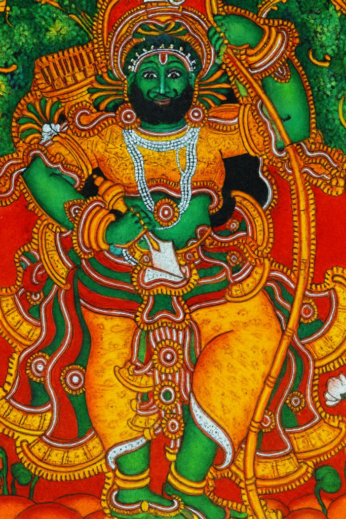 The tale of Vettakorumakan begins in the times of the Mahabharata, during the exile of the Pandavas. When Lord Krishna urged Arjuna to acquire the fearsome Pashupatastra from Lord Shiva, Arjuna retreated to the Himalayas for severe penance. However, as happens in many divine stories, the path to greatness demanded humility. Lord Shiva, disguised as Kiratha, a tribal hunter, along with Goddess Parvathi as Kirathi, staged a divine test. A wild boar was sent to disrupt Arjuna’s meditation. Arjuna in anger used his Gandiva to kill the boar but at the same time Kiratha’s also struck the boar. This sparked an argument with both that escalated into an intense duel. It was only when Arjuna’s arrows transformed into flowers through the grace of Parvathi that he realised he was confronting the very Lord Shiva he worshipped. Pleased with Arjuna’s valour and surrender, Shiva blessed him with the weapon he desired. Yet, the divine couple remained in their hunter form for some time and it is from this interim life in the forest that the legend of Vettakorumakan, their divine child, begins.