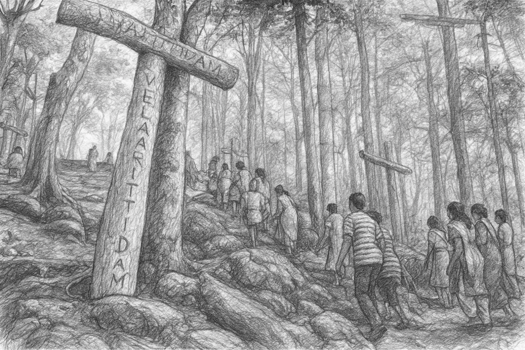 After establishing the famed Seven and a Half Churches of Kerala, St Thomas is believed to have passed through this land embraced by mountains and river. Today, the Malayattoor Church is revered as one of the eight International Shrines of St Thomas worldwide and the only one in Asia. It is also the largest pilgrim centre dedicated to the Apostle in India. Nestled beside the flowing Periyar River, the church and its surrounding landscape create a setting where nature and devotion exist in harmony. The heart of this pilgrimage lies uphill, at Kurisumudy, reached by a demanding forest trek. This sacred ascent commemorates one of the most dramatic episodes in the Apostle’s life.