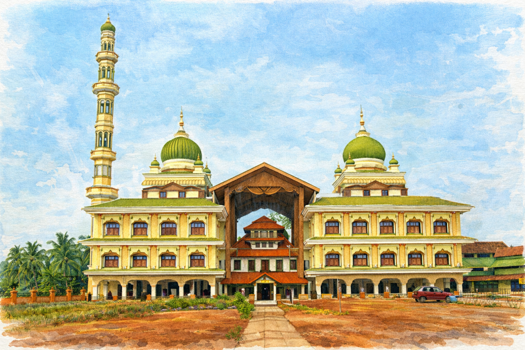Though trade was part of their journey, it soon gave way to deeper bonds with the local people. The teachings of the Prophet, rooted in truth, discipline, and compassion, resonated strongly with the communities of northern Kerala, and Islam gradually found a home here through dialogue rather than force. So profound was Malik Ibn Dinar’s presence that news of his wisdom reached the royal court. He was summoned by Cheraman Perumal, the Chera ruler of the time. The conversations that followed are woven into Kerala’s most enduring legends. Fascinated by the principles of Islam and the moral clarity of the Quran, the Perumal is believed to have embraced the faith. His conversion led to the construction of what is considered India’s first mosque at Kodungallur, before he departed for Mecca in search of the Prophet never to return.