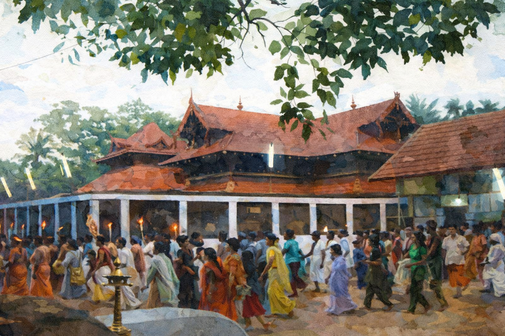 In most temples across India, Lord Krishna is worshipped in his serene shaantha shyamala form of gentle, playful, and eternally calm. Yet in the northern town of Taliparamba, pilgrims encounter a strikingly different vision of the Lord. Here stands the ancient Trichambaram Krishna Temple, where Krishna is revered in his fiercest Roudra Bhavam, moments after the slaying of Kamsa. Equal in sanctity to Guruvayur and often called North Guruvayur, Trichambaram offers devotees an experience that is both intense and deeply intimate. The origins of the temple are veiled in antiquity, with most traditions placing its presence well before the 10th century. Unlike most Krishna temples, Trichambaram’s rituals, legends, and even atmosphere reflect a powerful emotional state of the deity one that captures the raw humanity and divinity of Krishna after fulfilling his cosmic destiny.