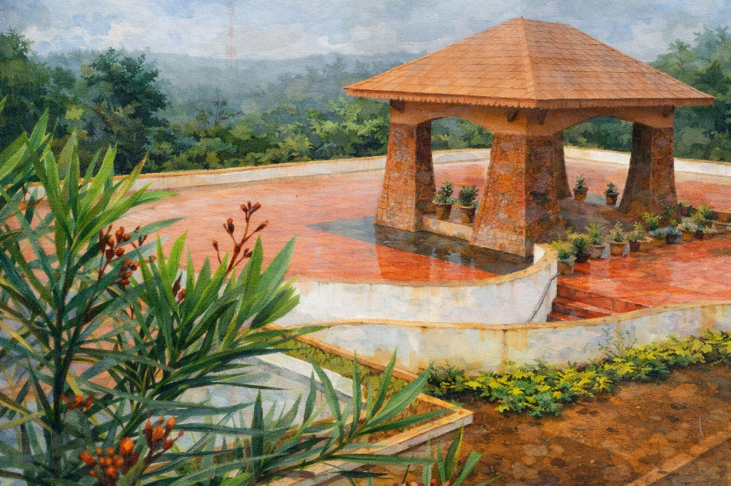 Ultimately, the British managed to end the rebellion only by killing Pazhassi. Yet even in death, the Lion commanded respect. Despite their notorious cruelty towards enemies, the British accorded him a state funeral, a rare honour. His body was brought to Mananthavady, and the last rites were performed according to the traditions of the Kottayam royal family. The tomb at the memorial marks the exact site where those rites were conducted. The memorial itself is an evocative blend of symbolism and simplicity. The tomb is built as a circular pit using red laterite stone, echoing both the earth he defended and the forests that sheltered him. Surrounding it is a spacious mandapam, whose outer walls are sculpted with vivid scenes from Pazhassi Raja’s life with his battles, alliances with tribal warriors, and defiance of colonial rule. Carefully landscaped gardens and flowering plants add a sense of calm, inviting visitors to pause and reflect rather than merely observe.