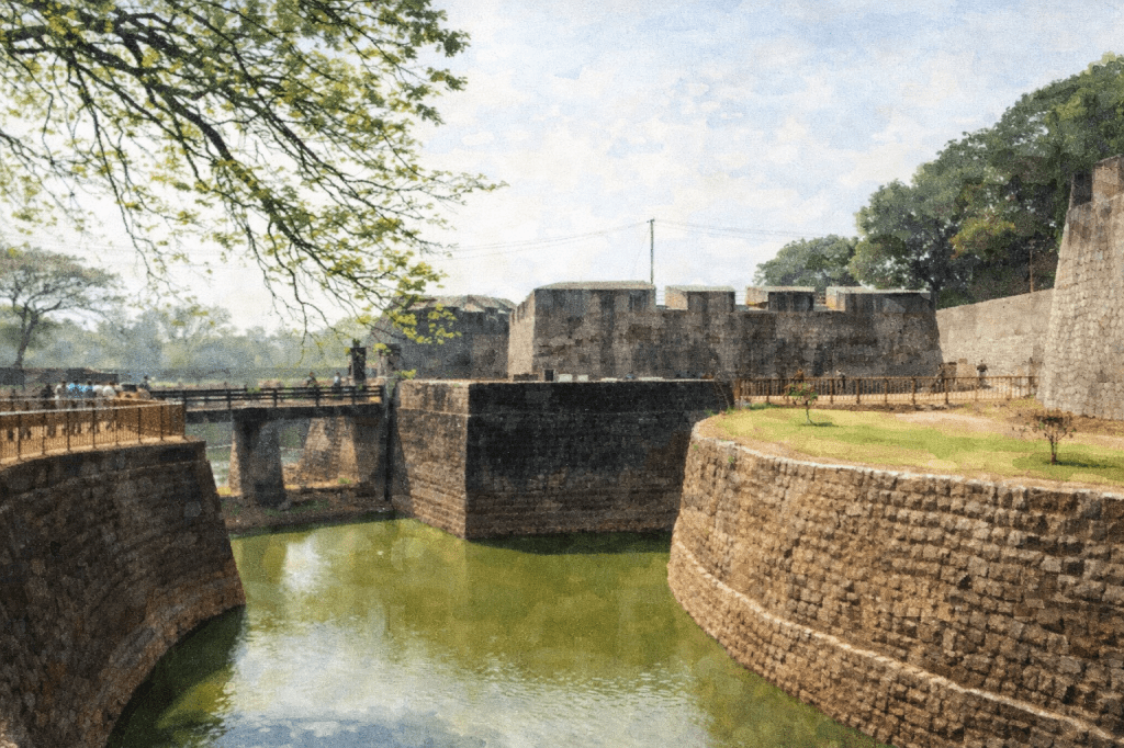 In the heart of Palakkad, where the Western Ghats gently open into the plains of Kerala, stands a fort unlike any other in South India. Broad, austere, and surrounded by an ever-filled moat, Palakkad Fort, popularly known as Tipu’s Fort, is less a monument of ornamentation and more a statement of military genius. Though its popular name remembers Tipu Sultan, the true architect of the fort’s destiny in Kerala was his father Hyder Ali, the formidable ruler of Mysore. For the traveller walking through its massive granite gateways today, Palakkad Fort is not merely stone and water; it is the echo of Hyder Ali’s ambition, strategy, and relentless pursuit of power in Malabar.